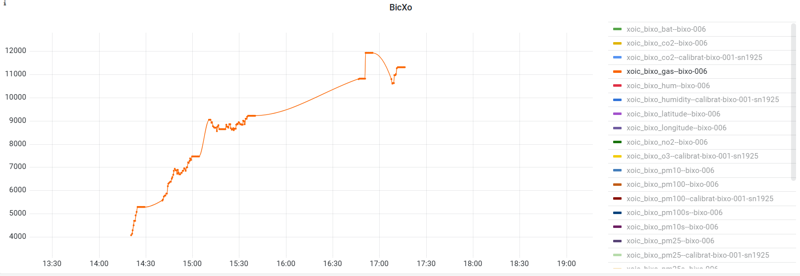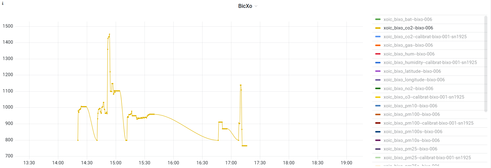 BICxO és un dispositiu portable per ser ancorat a bicicletes i altres vehicles de mobilitat activa. Connectat a la xarxa oberta TTN emprant xarxa sense fils LoRaWAN. El dispositiu s’alimenta d’energia solar i és una plataforma multi-sensor personalitzable. En la primera versió es focalitza en mesurar la qualitat de l’aire, però s’hi poden incorporar altres sensors.